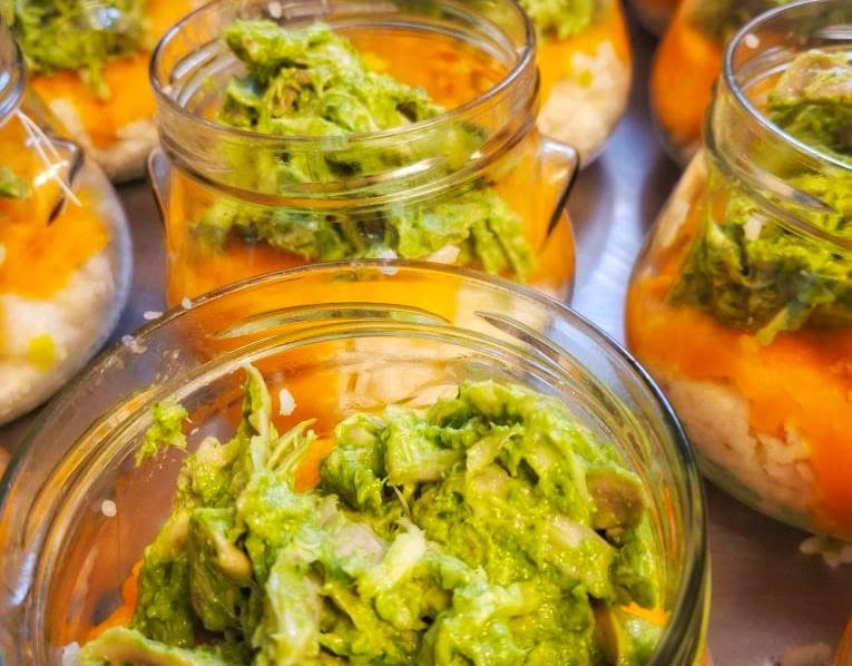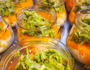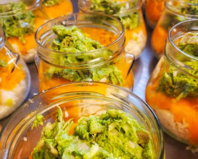 Nous sommes soucieux de l'impact des emballages jetables sur la planète et sur notre santé, c'est pourquoi nous avons choisi des bocaux en verre réutilisables que nous récupérons à la prochaine commande !